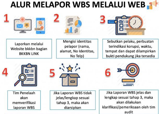 WBS memberikan kesempatan bagi Anda untuk melaporkan dugaanpelanggaran hukum atau fraud, pelanggaran kode etik, maupun pelanggaranbenturan kepentingan yang dilakukan oleh internal Perwakilan BKKBN provinsi Sulawesi Tengah.